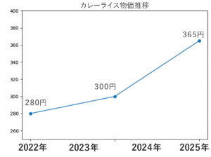 かつて「安くて量が作れる料理」だったカレーが、すでに別の価格帯に入っていることが分かる。